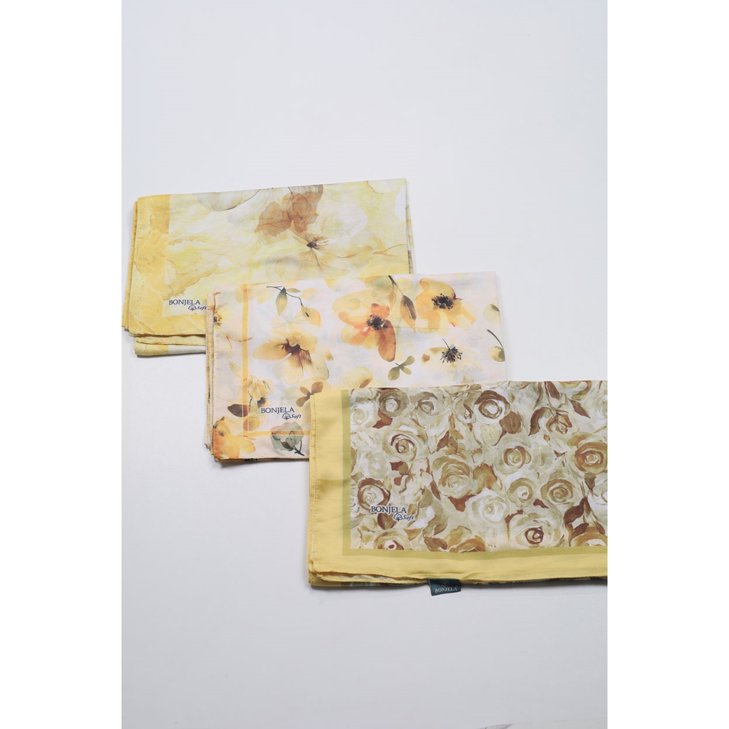 Bonjela Desenli Dijital Soft Şal - Sarı Serisi