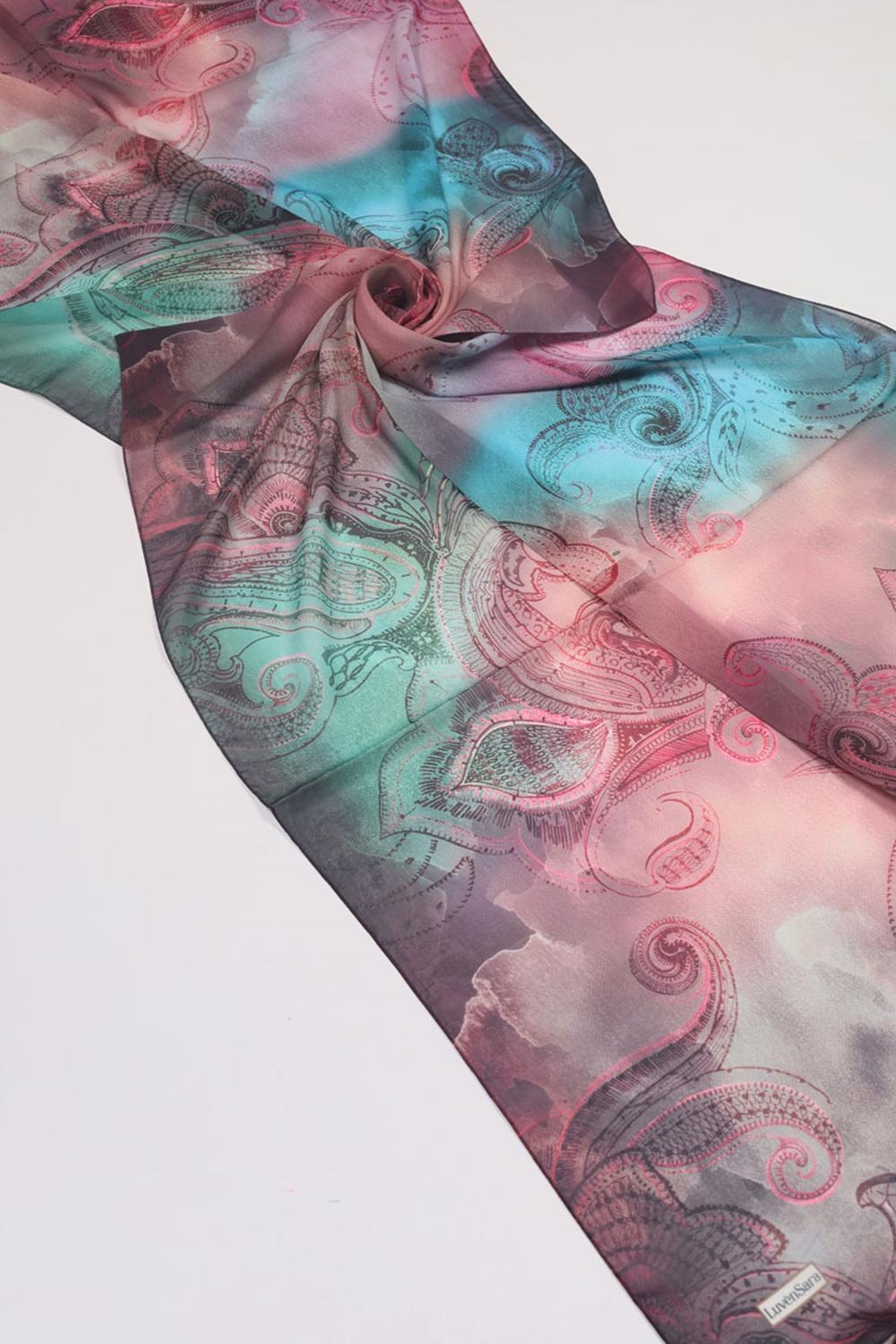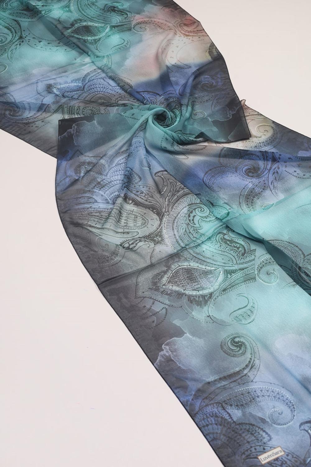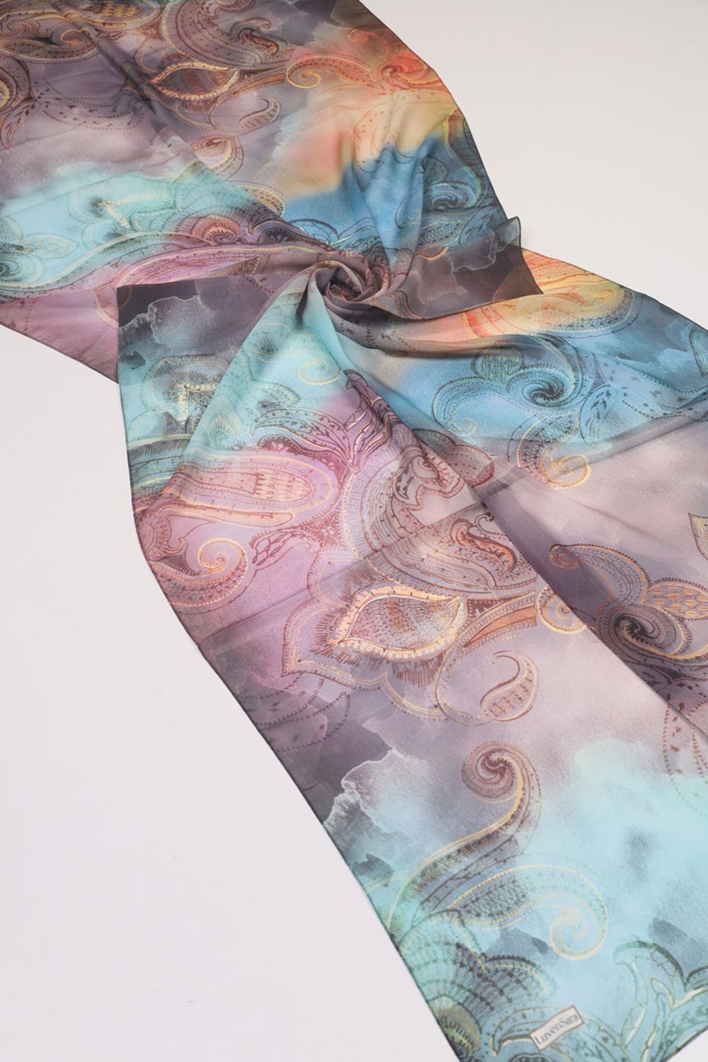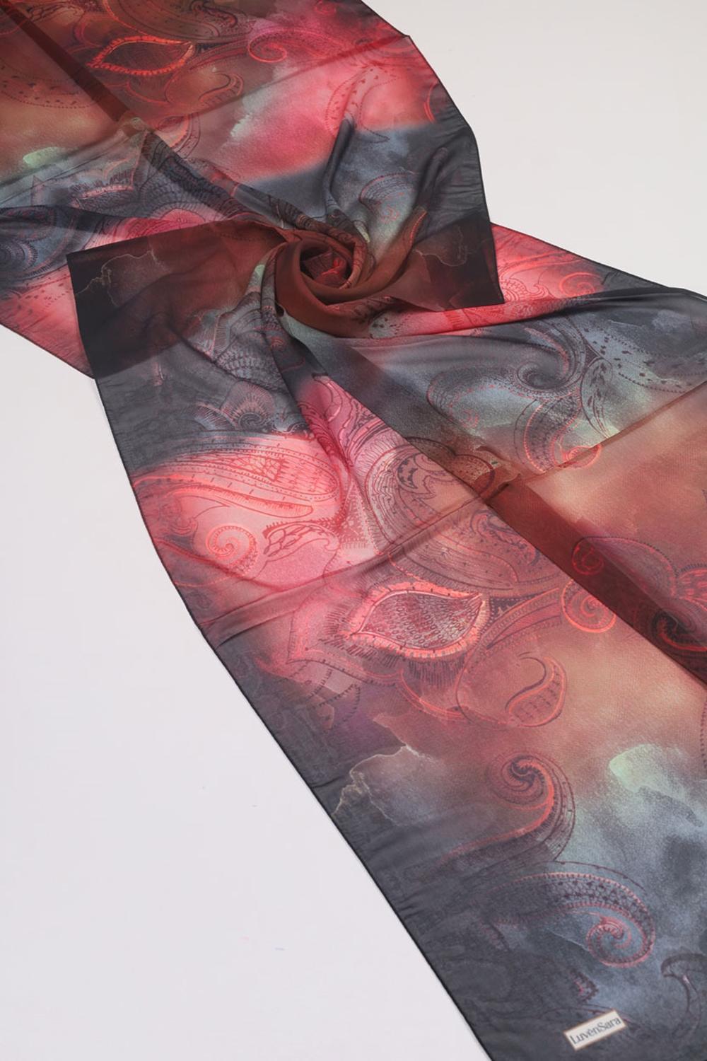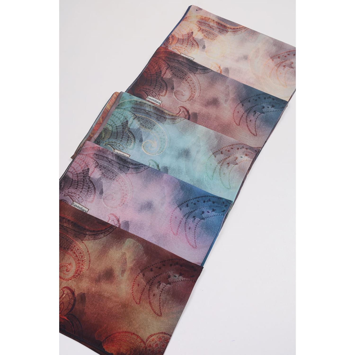 Luvensara Desenli Şifon İpek Şal