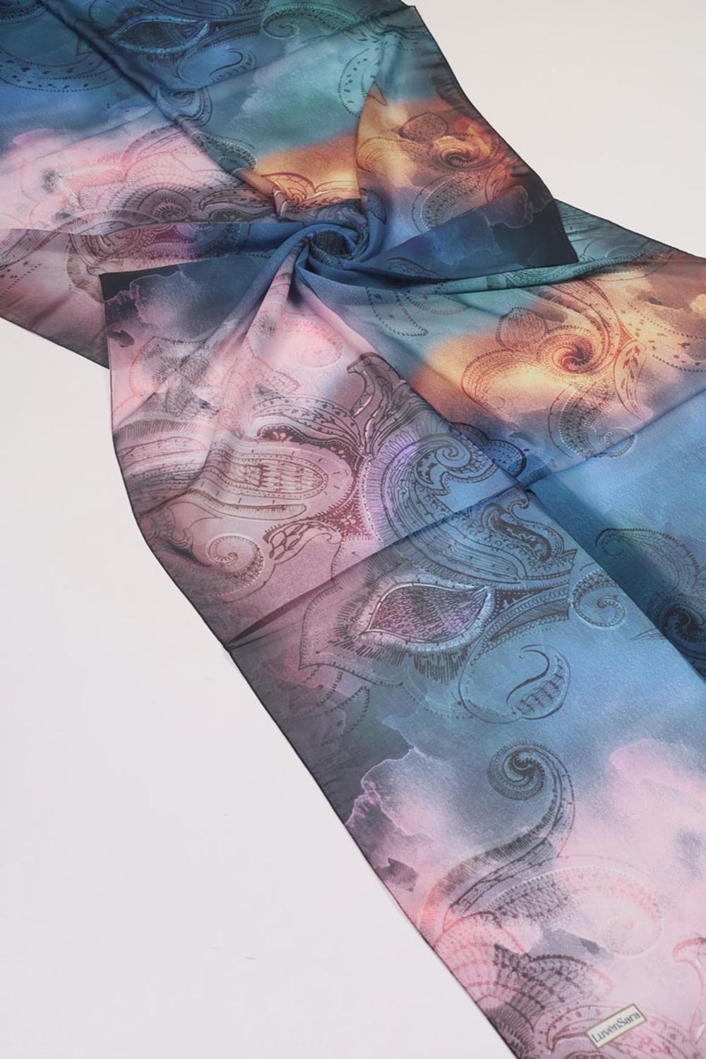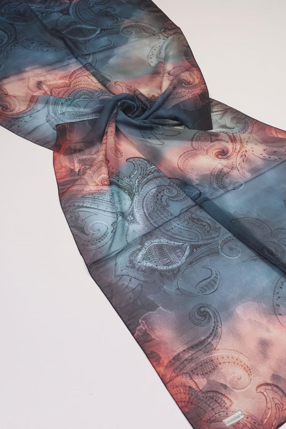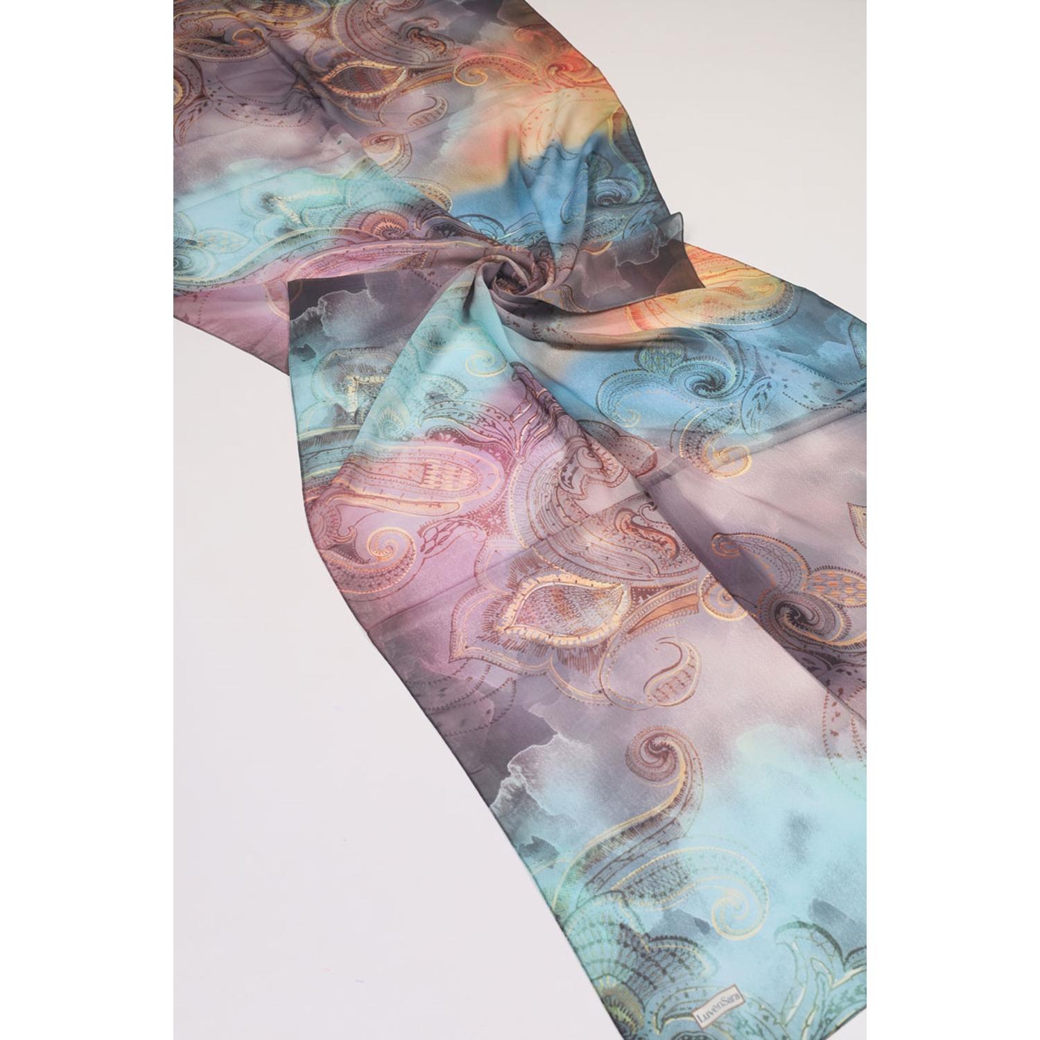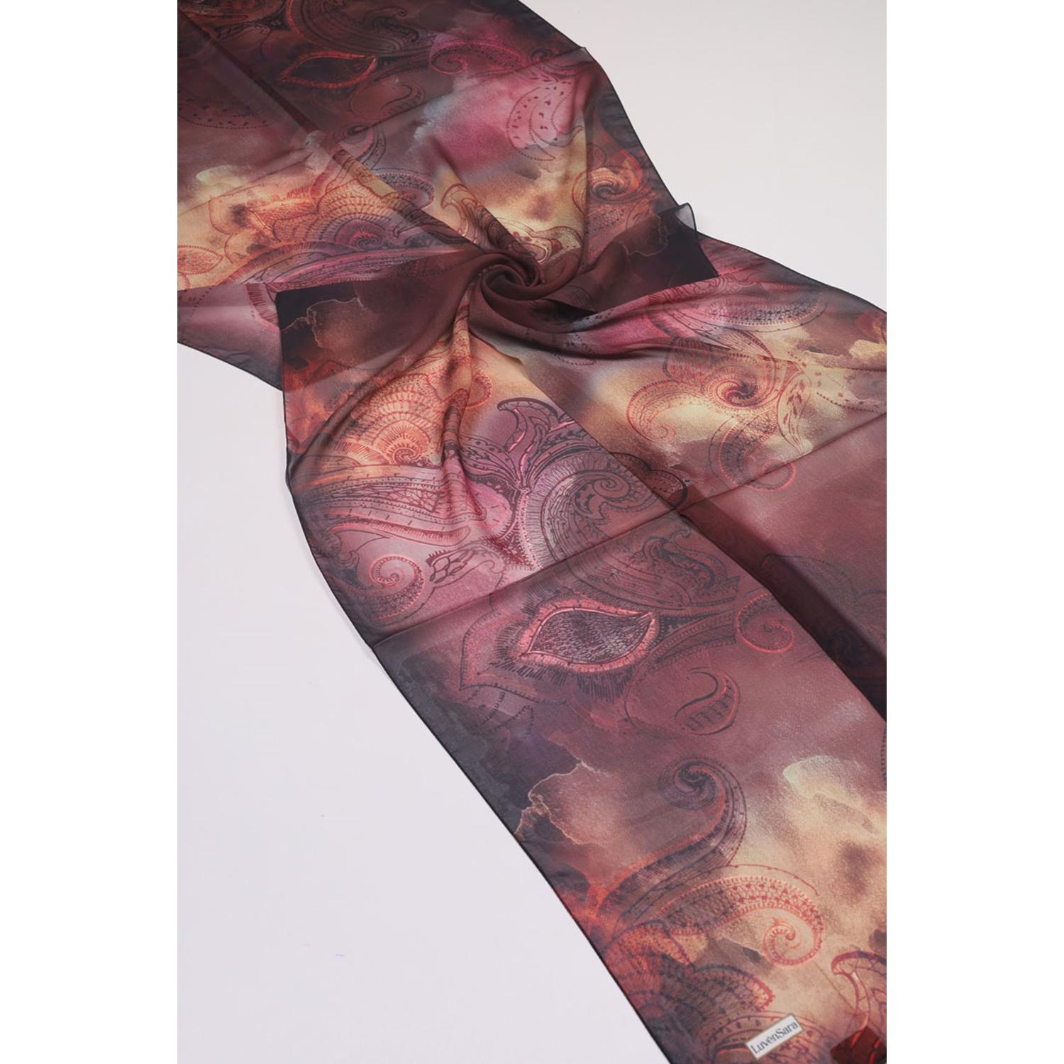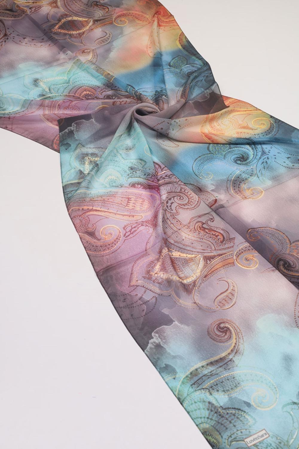 Luvensara Desenli Şifon İpek Şal
